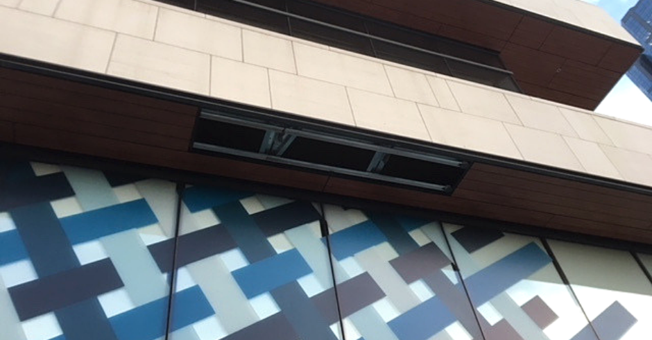 Large environmental graphic on exterior glazing that incorporated the Cadillac Fairview brand.
